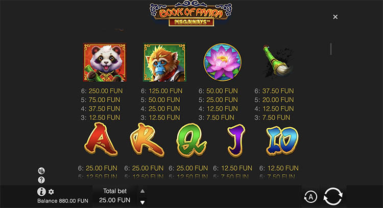 Таблица выплат Book of Panda Megaways