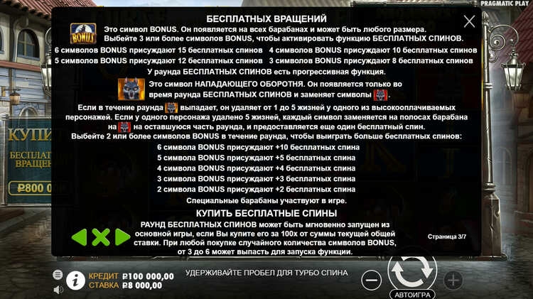 Таблица выплат Curse of the Werewolf Megaways