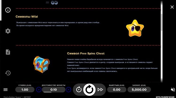 Таблица выплат Finn’s Golden Tavern