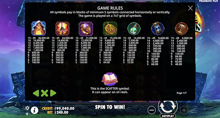 Таблица выплат Fire Portals