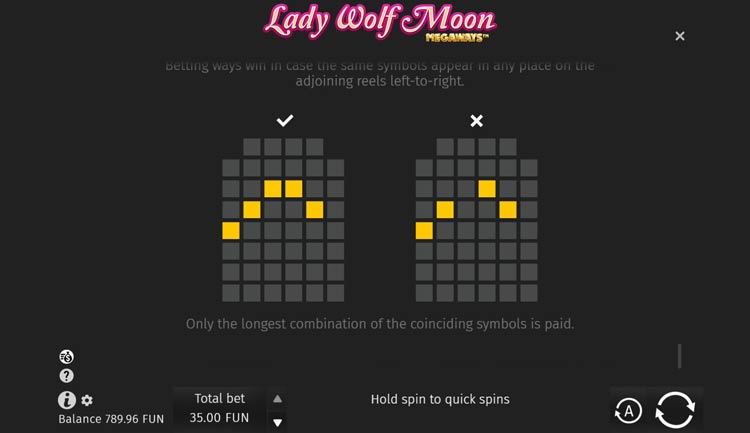 Таблица выплат Lady Wolf Moon Megaways