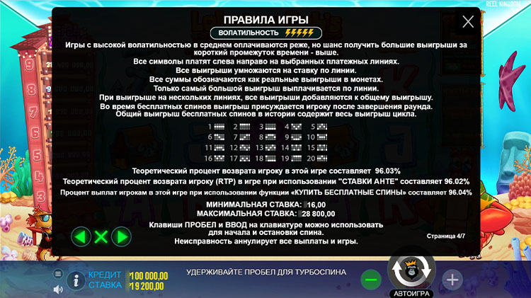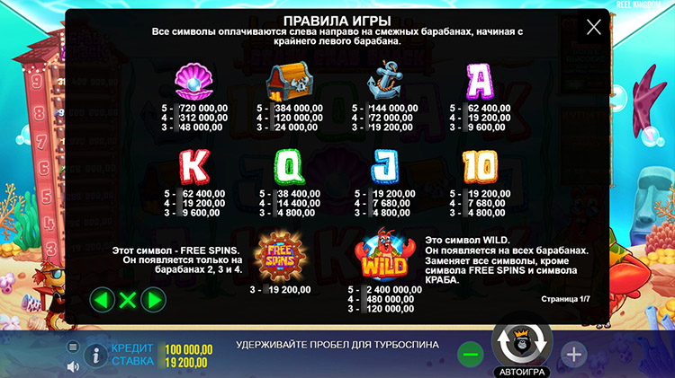 Таблица выплат Lobster Bob’s Crazy Crab Shack