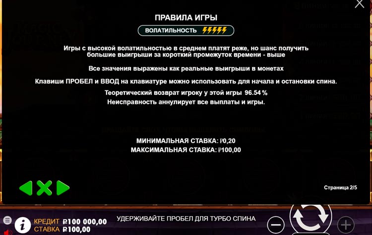 Таблица выплат Magic Journey