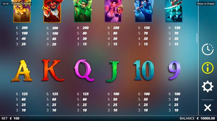 Таблица выплат Pixies vs Pirates