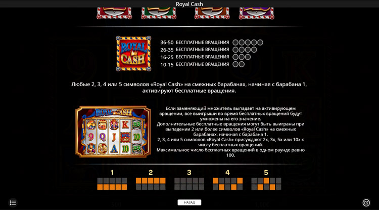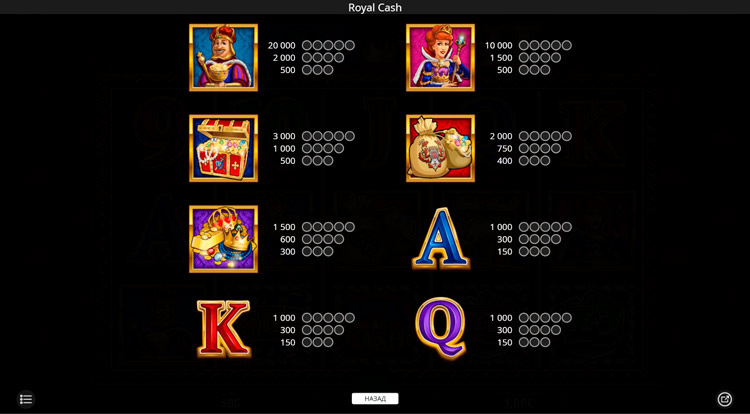 Таблица выплат Royal Cash