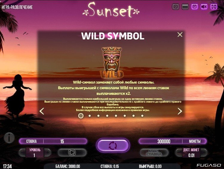 Таблица выплат Sunset
