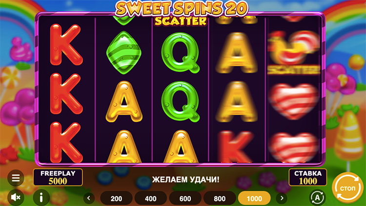 Таблица выплат Sweet Spins 20