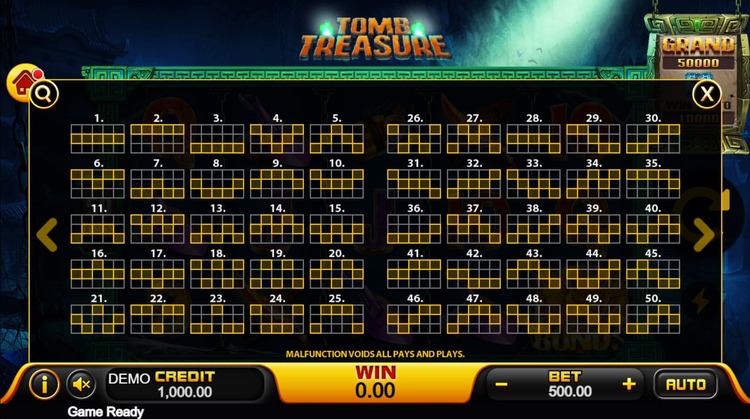 Таблица выплат Tomb Treasure