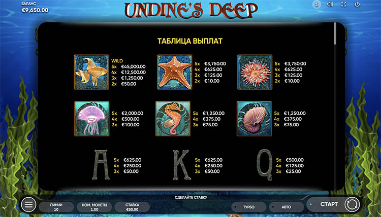 Таблица выплат Undine’s Deep