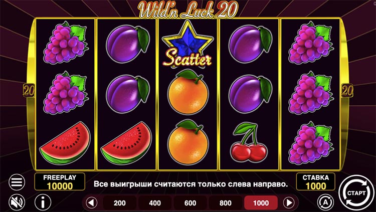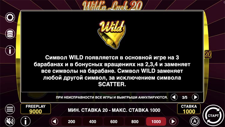 Таблица выплат Wild & Luck 20